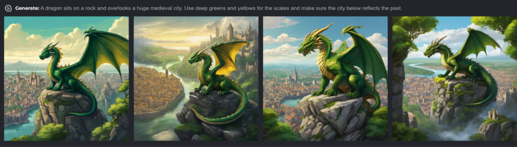 Result: Beautiful, detailed, 2D painting style dragon, rich in colors. Maybe he needs some color adjustment. Drawing a dragon is not an easy task because of its complexity.
